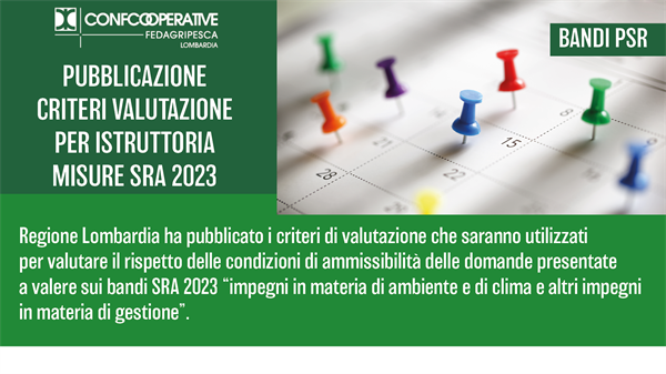Nell'ambito della nuova PAC 2023 - 2027, Regione Lombardia ha pubblicato i criteri di valutazione che saranno utilizzati per valutare il rispetto delle condizioni di ammissibilità delle domande presentate a valere sui bandi SRA 2023 “impegni in materia di ambiente e di clima e altri impegni in materia di gestione”, per i seguenti interventi: