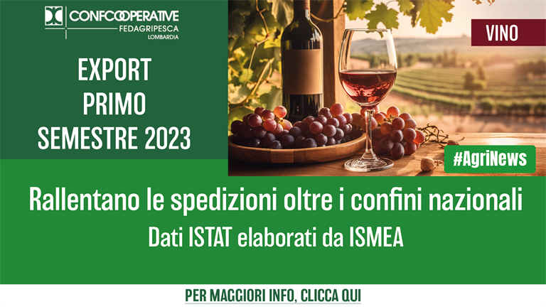 giovedì 28 settembre 2023 Vino, frenata per l'export nel primo semestre 2023 Dati ISTAT elaborati da Ismea